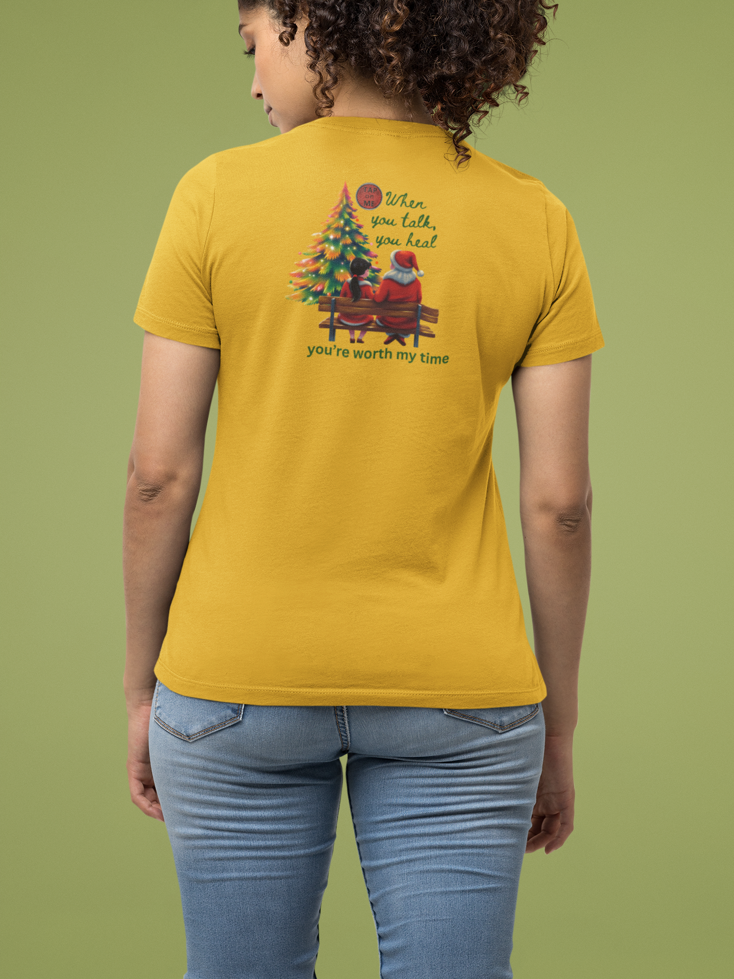 "When you talk, you heal" encourages conversation -- letting others know that their voice has value and their healing matters. It's a reminder that opening up can be the first step towards growth, connection, and emotional freedom this holiday season.